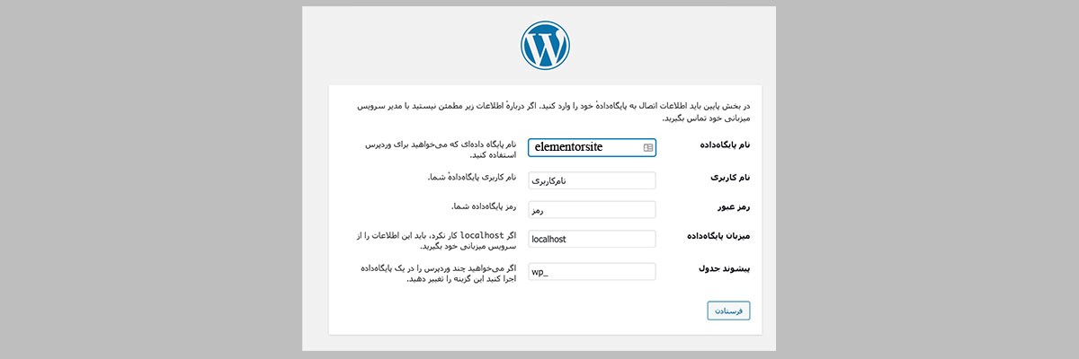 اطلاعات مربوط به دیتابیس که در بخش های قبلی کپی کردید؛ باید در این پنجره وارد کنید. مواردی مثل نام پایگاه داده، نام کاربری و رمز عبور رو باید حتما پر کنید. به فیلد میزبان پایگاه داده دست نزنید اما پیشوند جدول رو شاید نیاز باشد به دلایل امنیتی یا فراهم شدن امکان نصب چند وردپرس روی یک پایگاه داده لازم باشد که تغییر دهید.