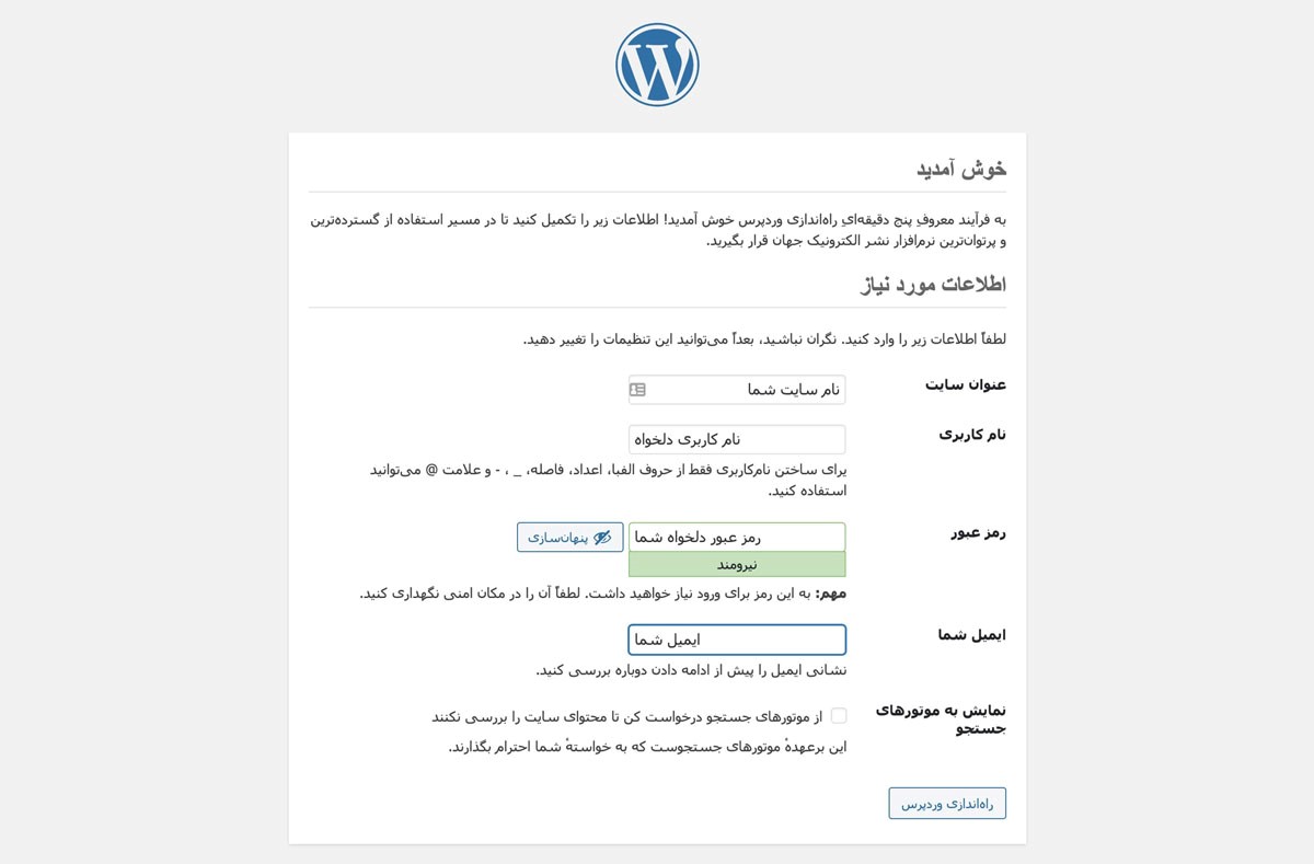 اجرای فرآیند نصب وردپرس