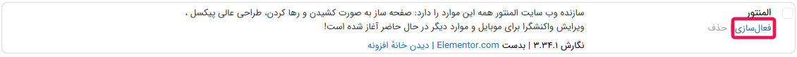 بعد از نصب افزونه به بخش افزونه ها برگردید و افزونه المنتور را فعال کنید.